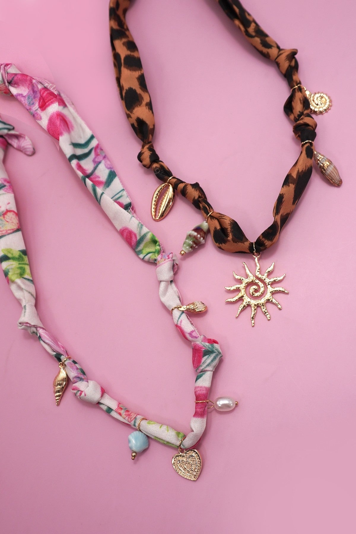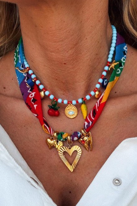 18K Stainless Steel Tarnish-Free Charm Necklace with Scarf Rope Chain with Ocean Charm. Charm Necklace, featuring 18K Stainless Steel with multi charm of sun, heart... View full product details